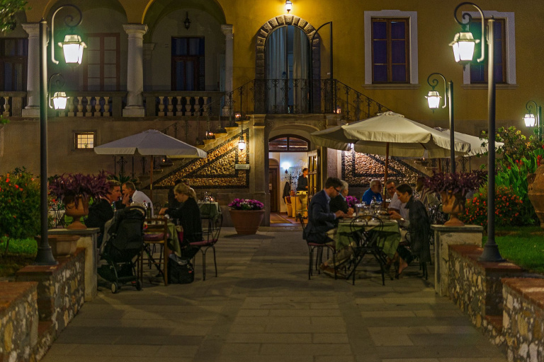 Goditi una serata indimenticabile nella corte esterna di Villla Cheli , con un’atmosfera unica e rilassante. Lasciati sorprendere dalle presentazioni artistiche dei piatti preparati di Nostri Chef.